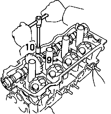 Fig. 3 Exhaust Camshaft Bearing Cap Bolt 9 & 10 Removal. 3S-FE: