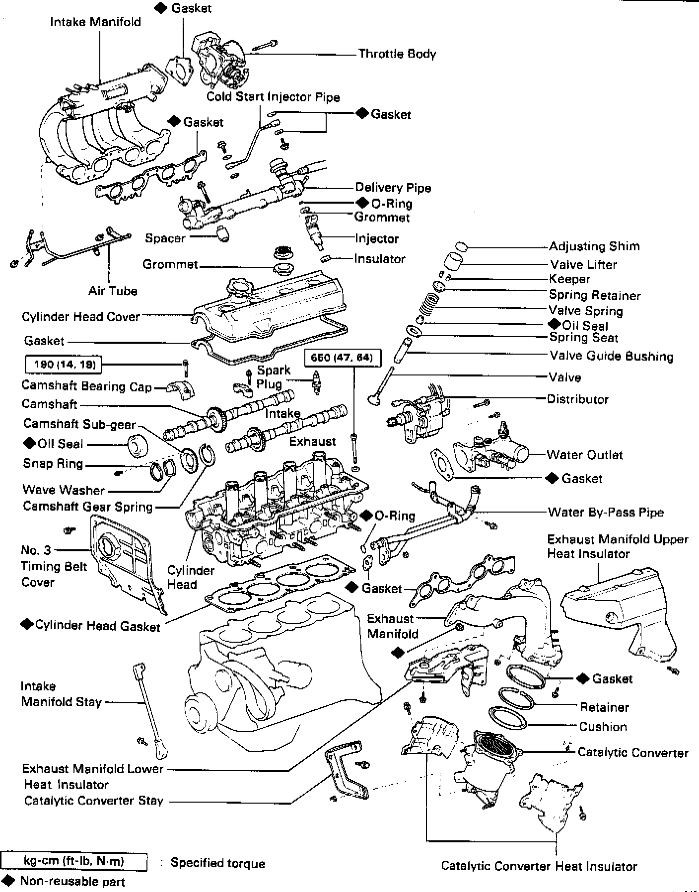 Fig. 2 Exhaust Camshaft Bearing Cap Bolt 3 Through 8 Removal. 3S-FE: