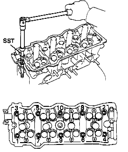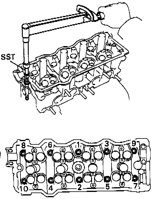 Fig. 11 Exhaust Camshaft Bearing Cap Bolt Tightening Sequence. 3S-FE: