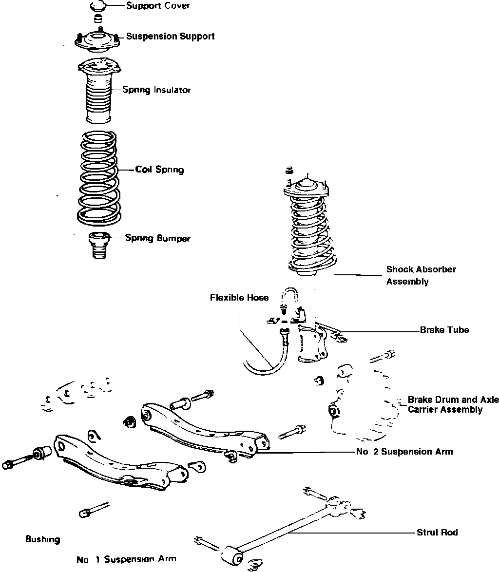 Fig. 9 Rear suspension. Camry, Tercel & Corolla w/front wheel drive: