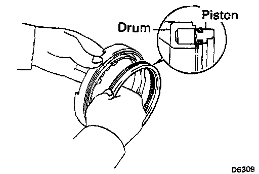 (b) Press the piston into the drum, being careful not to damage the 0-rings.