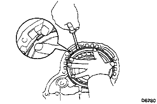 Be sure the end gap of the snap ring is not aligned with one of cutouts.