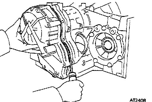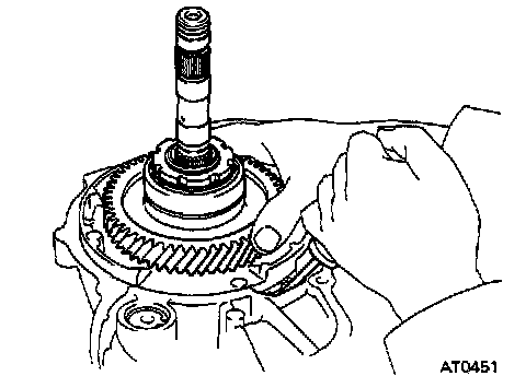 (c) Turn the counter driven gear with a screw driver to install the overdrive unit. Tighten the bolts.
