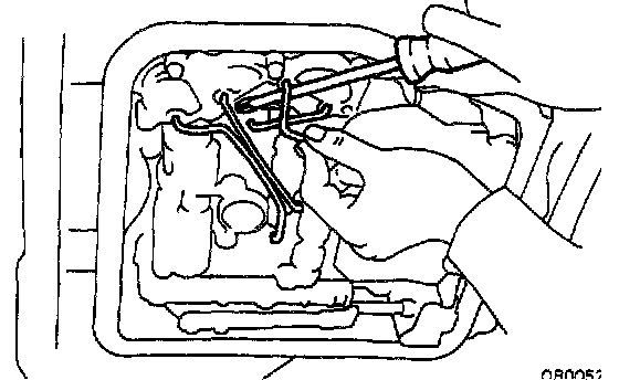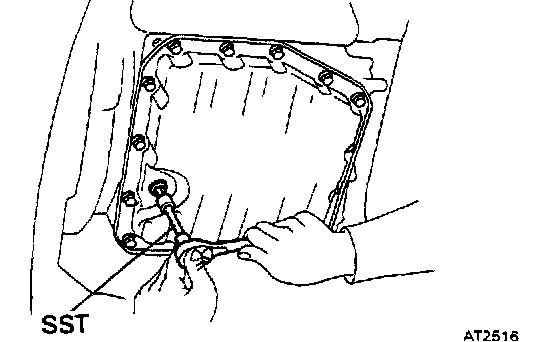 Remove the drain plug with SST and drain the fluid into a suitable container.