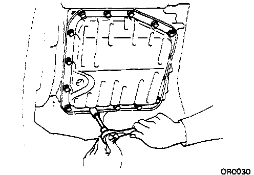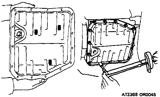 Remove all pan bolts, and carefully remove the pan assembly. Discard the gasket.