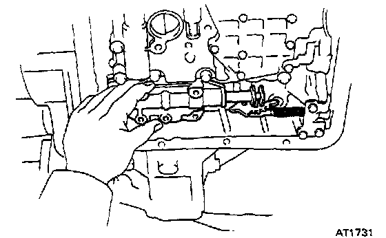6. PLACE MANUAL VALVE AND BODY ON TRANSMISSION