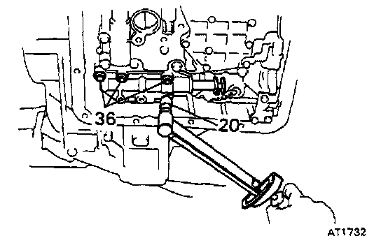 (b) Check that the manual valve lever is in contact with the center of the roller at the tip of the detent spring.