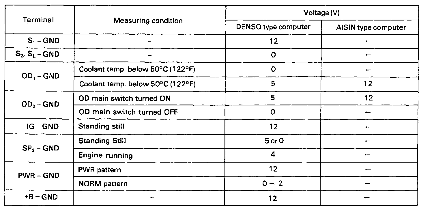 INSPECTION ELECTRONIC CONTROL COMPONENTS1. INSPECT VOLTAGE OF ECT COMPUTER CONNECTOR