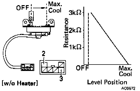 (with out Heater) Using an ohmmeter, check resistance between the terminals 2 and 3 for each lever position as shown in the table.