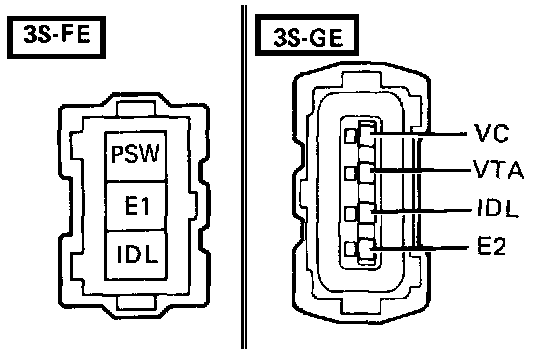 b. Short terminals IDL and E1 (3S-FE) or E2 (35-GE) of the wiring connector.