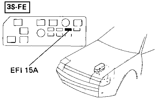 1. After repair of trouble area, the diagnostic code retained in memory by the ECU must be cancelled out by removing the EFI fuse (15A), located in the engine compartment relay box, for 10 seconds or more, depending on ambient temperature (the lower the temperature, the longer the fuse must be left out) with the ignition switch "OFF".