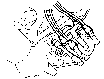 4. DISCONNECT HIGH-TENSION CORDS FROM SPARK PLUGS AND IGNITION COIL.