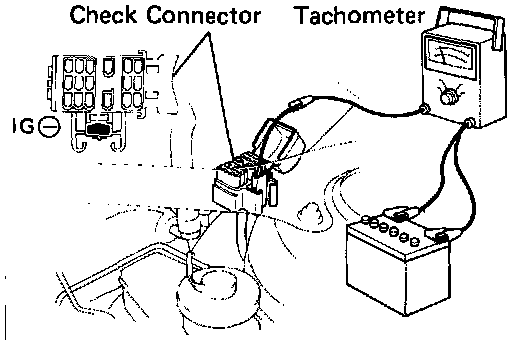 - Connect the test probe of a tachometer to terminal IG (-) of the check connector.