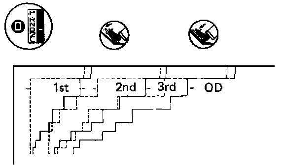 G. While running in the D range, release your foot from the accelerator pedal and shift into L range. Then check to see if OD 3, 3 -> 2 and 2 -> 1 downshift points conform to those indicated on the automatic shift diagram.