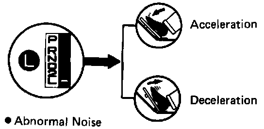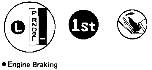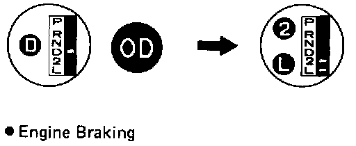 F. While running about 80 km/h (50 mph) in D range OD gear, shift in to 2 and L ranges and check the engine braking effect at each of these ranges.