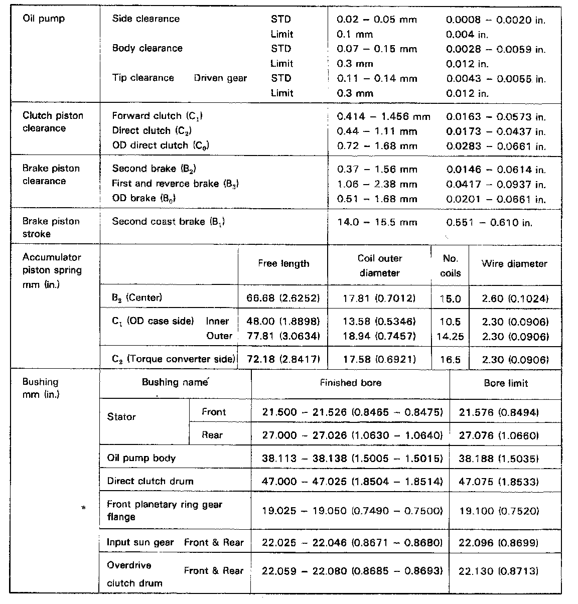 A140E (3S-GE) 3-spd O/D A/T, Valve Body/Clutch Clearance: