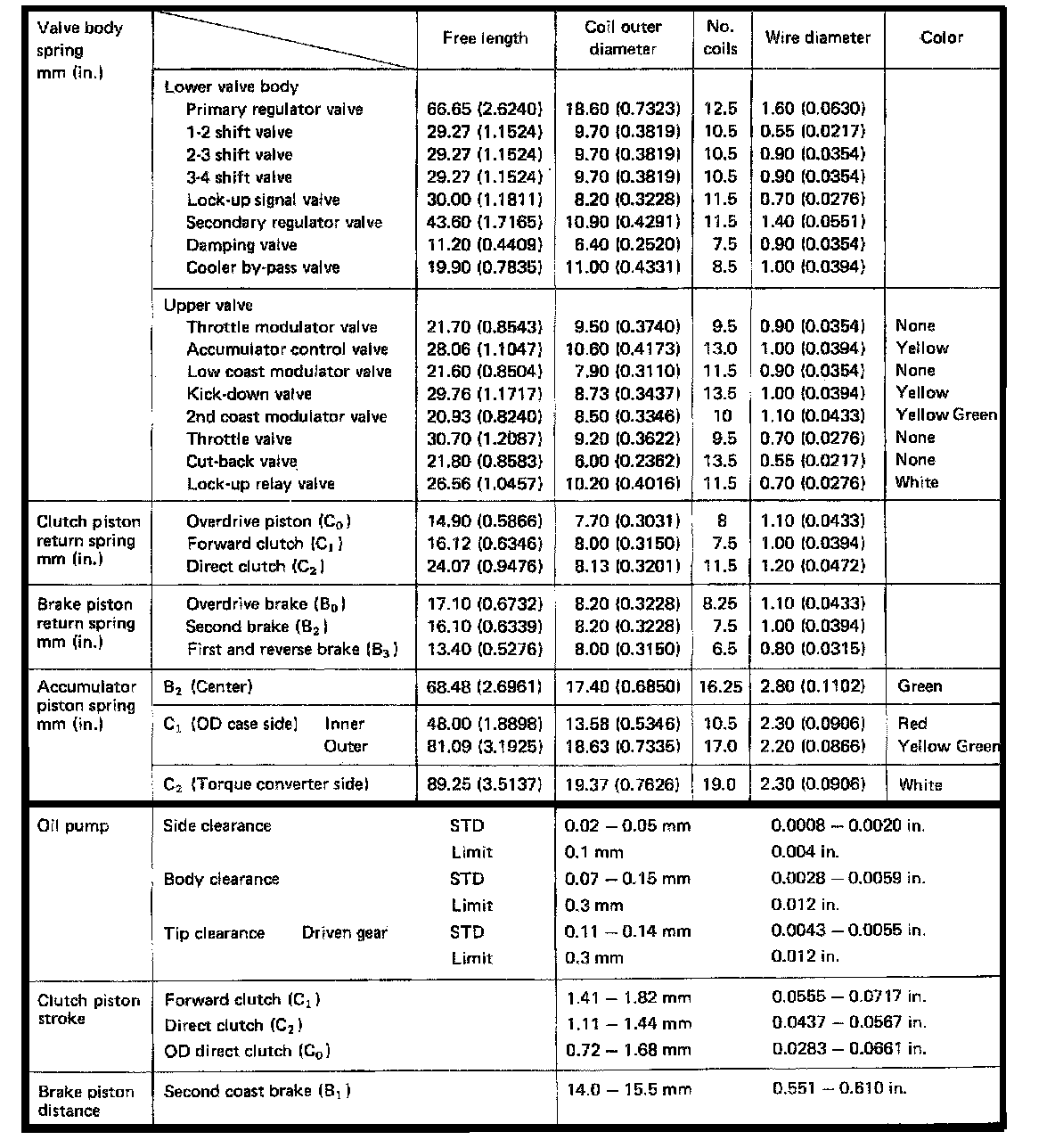 A140E 3-spd A/T, Lock Up Speeds/ Clearances: