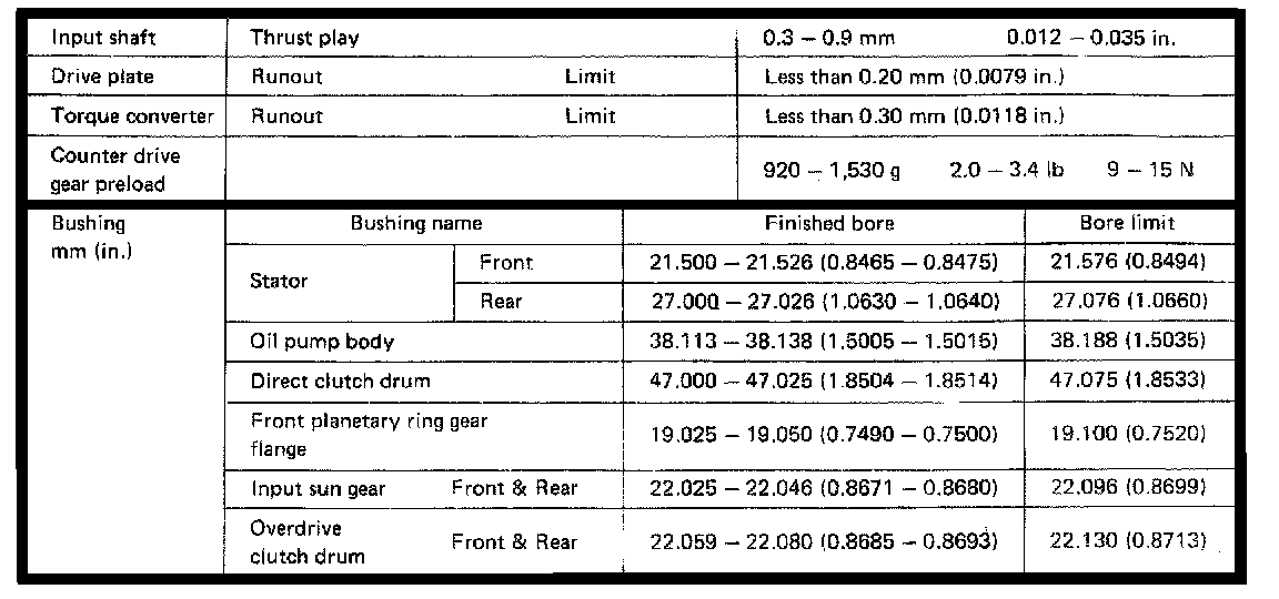 A140E (3S-GE) 3-spd O/D A/T, Transmission Play/Limits: