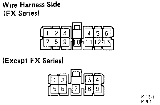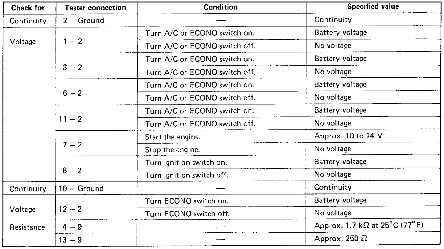1. Disconnect amplifier and check connector on wire harness side as shown on the chart.