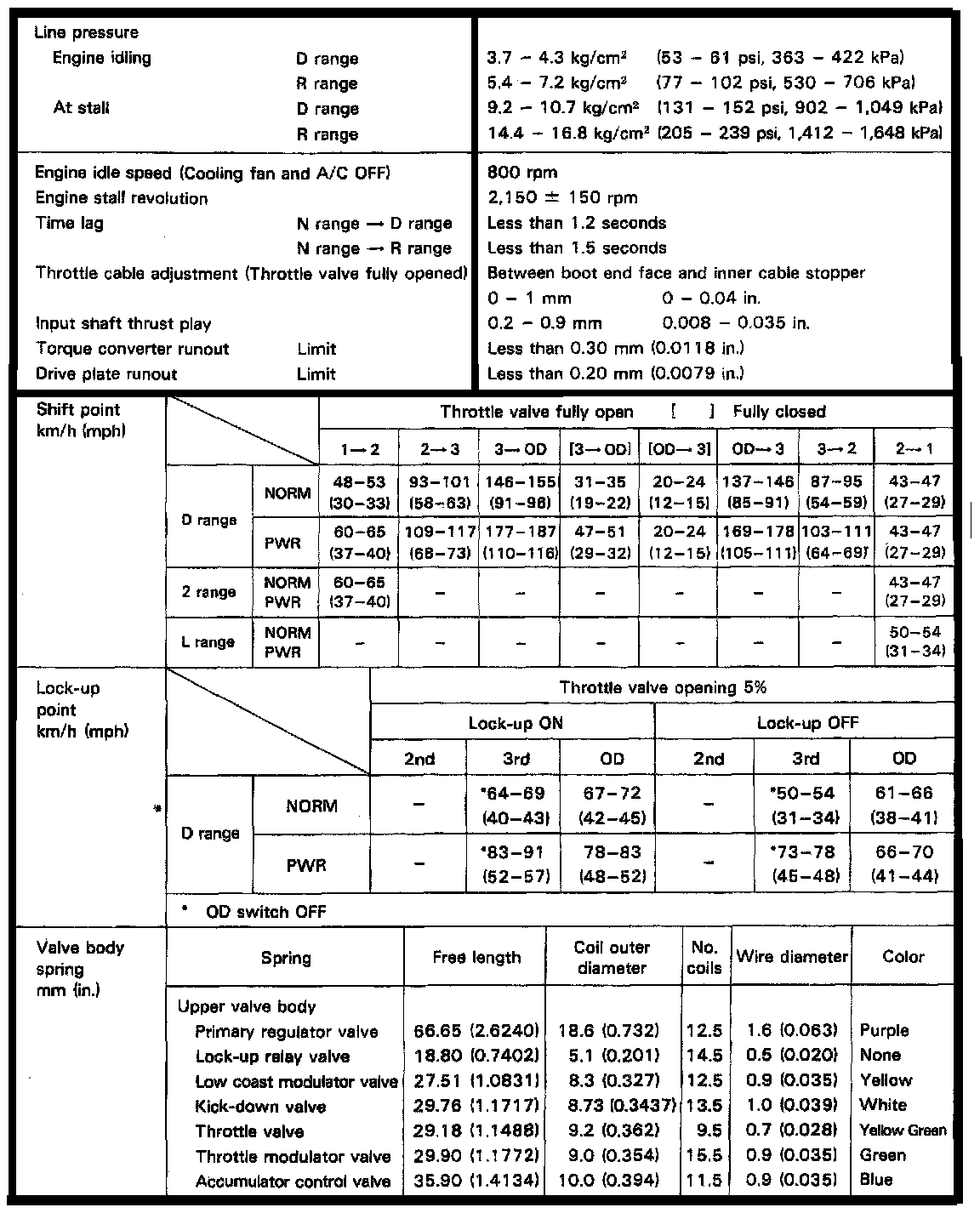 A240E 3-spd O/D A/T, Line Pressure/Shift Points: