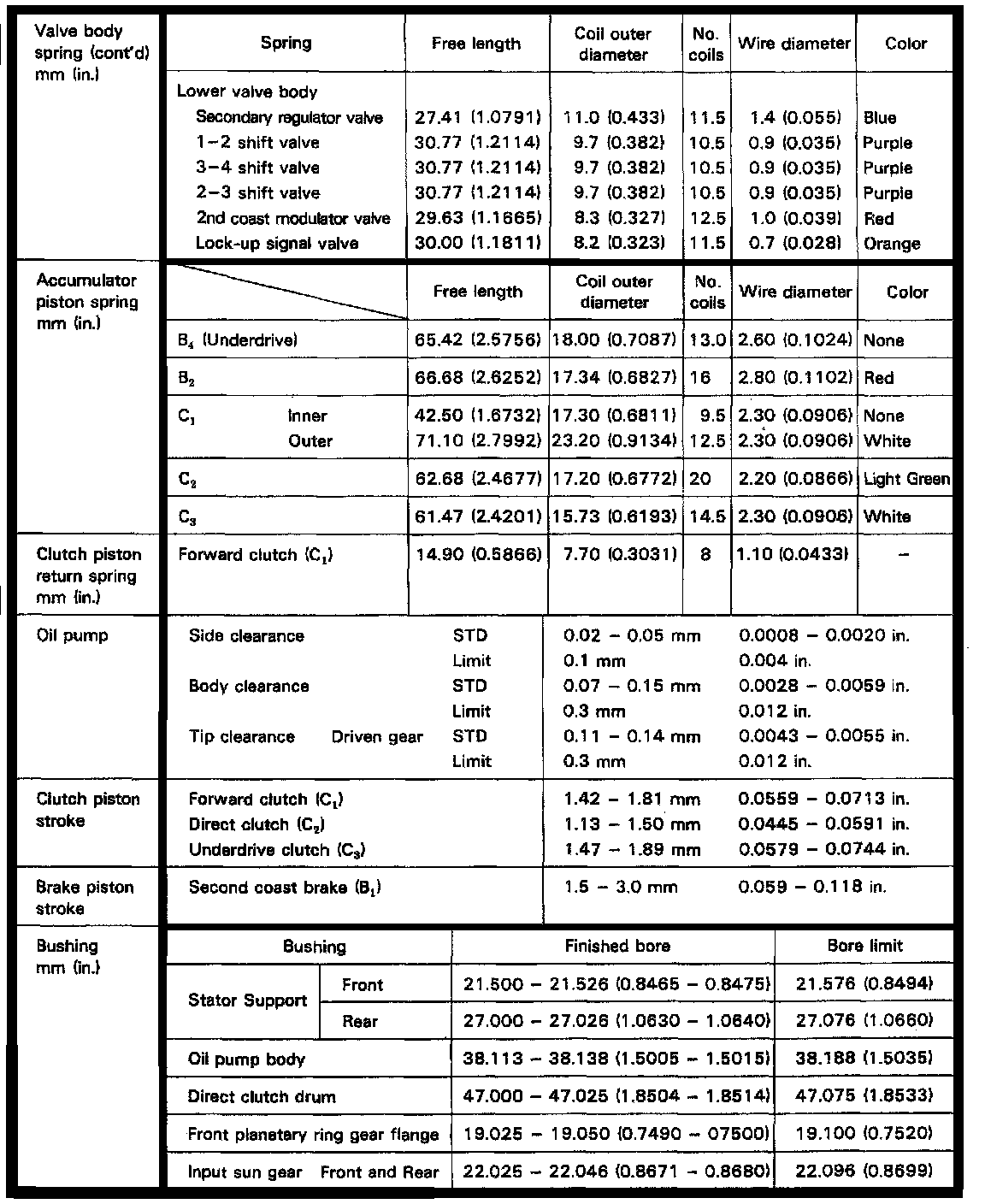 A240E 3-spd O/D A/T, Valve Body/Clutch Clearances: