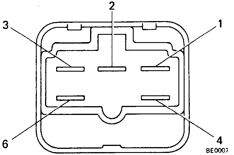 Apply battery voltage between terminals 6 and 2. Continuity should then exist between terminals 1 and 4. If operation is not as specified, replace the relay.