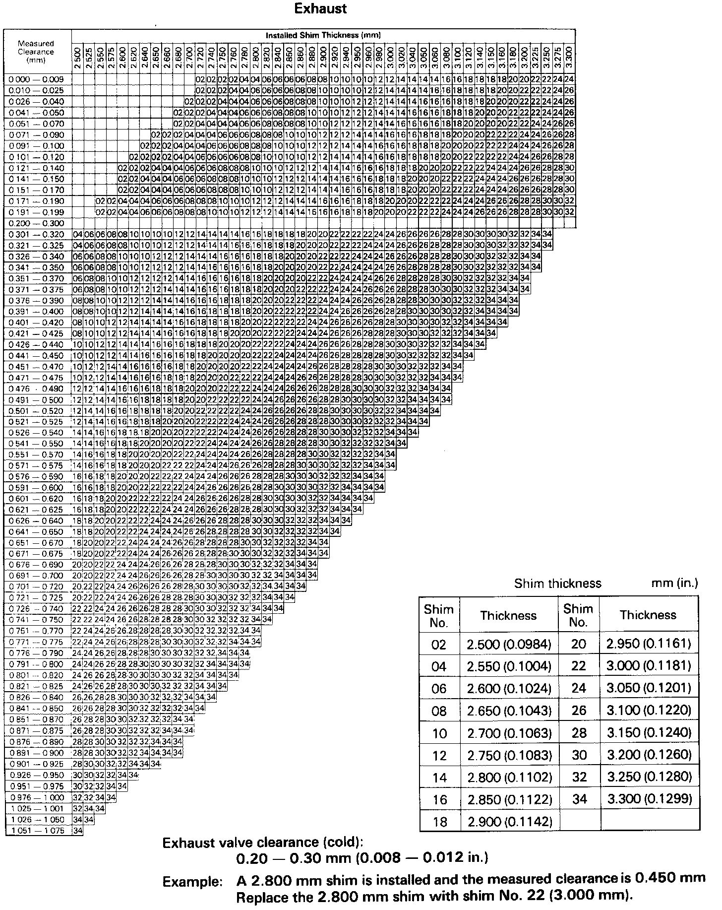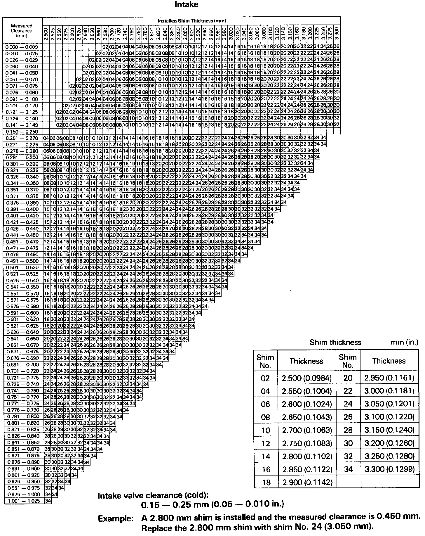 Adjusting Shim Selection Chart