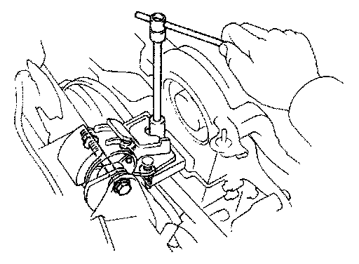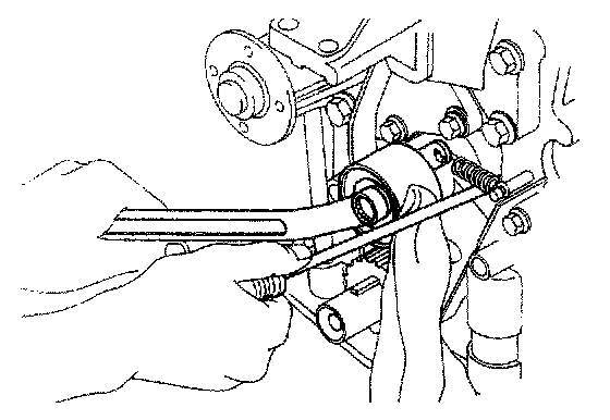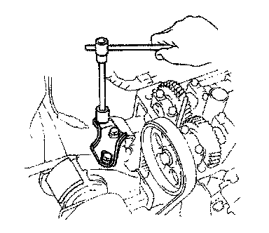 (c) Pry the timing belt idler pulley toward the left as far as it will go and temporarily tighten it.