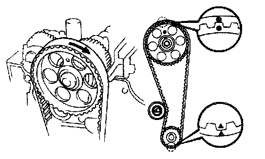 NOTE: If reusing the timing belt, align the points marked during removal and install the belt with the arrow pointing in the direction of engine revolution.