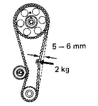Timing belt deflection: 5 - 6 mm ( 0.20 - 0.24 in.) at 2 kg (4.4 lb, 20 N)