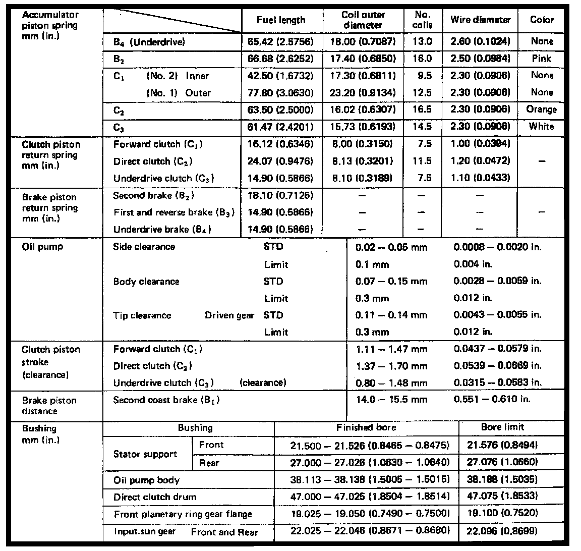 A240L 3-spd O/D A/T, Accumulator/Clutch Clearances: