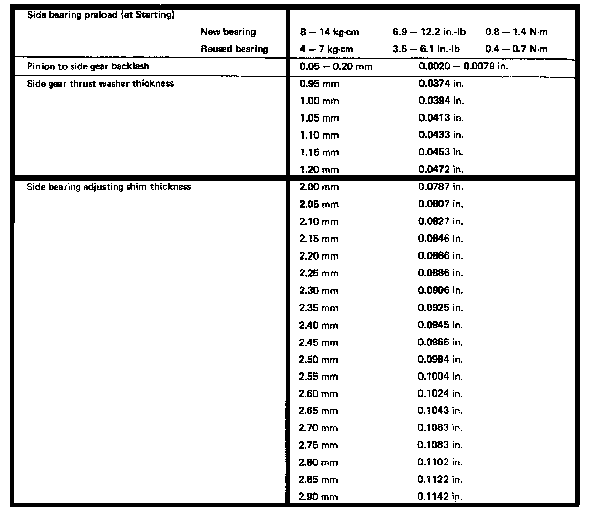 A240L 3-spd O/D A/T, Differential Torque/Thickness: