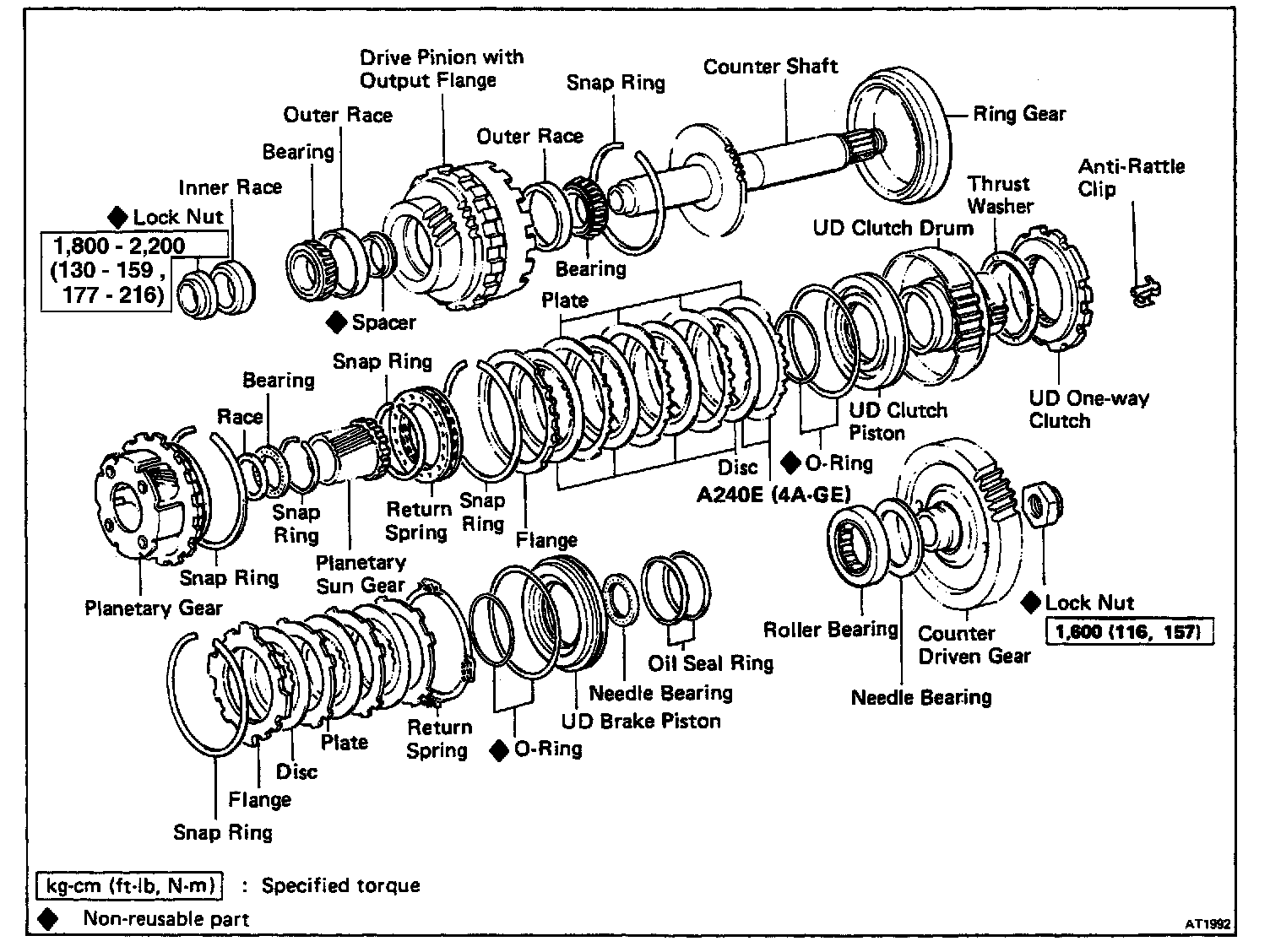 1,800 - 2,200 kg.cm (130 - 159 ft.lbf, 177 - 216 N.m)