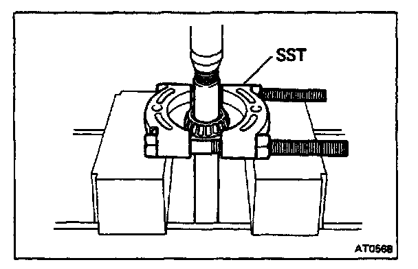 Using SST and press, remove the bearing.