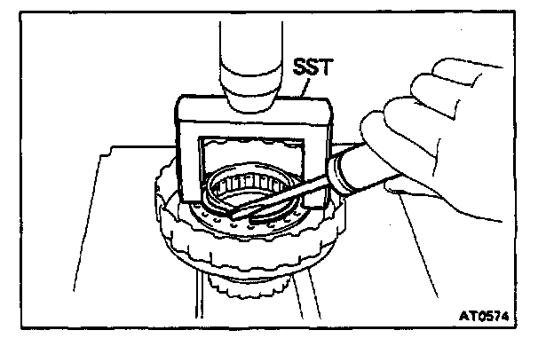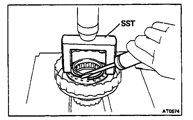 6. REMOVE THRUST NEEDLE BEARING AND RACE