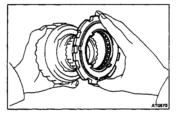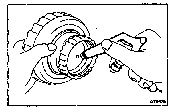 Hold the clutch drum and turn the one-way clutch. The one-way clutch should turn freely counterclockwise and lock clockwise.