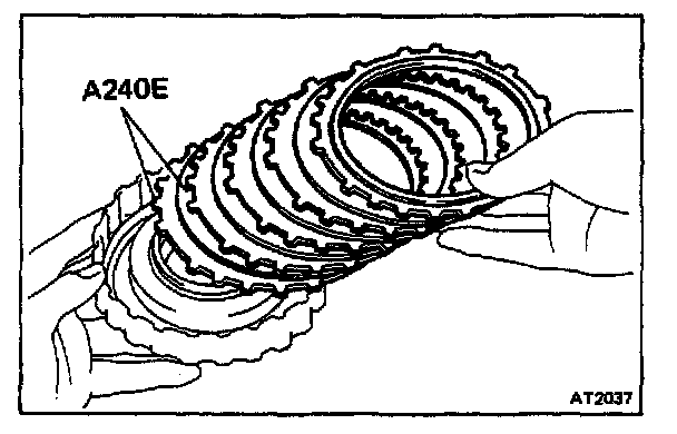 Check that the sliding surface of disc is not worn or burnt. If the disc is worn or burnt, replace all discs.