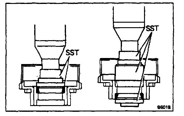Using SST and press, press in the bearing of the thick inner race side.