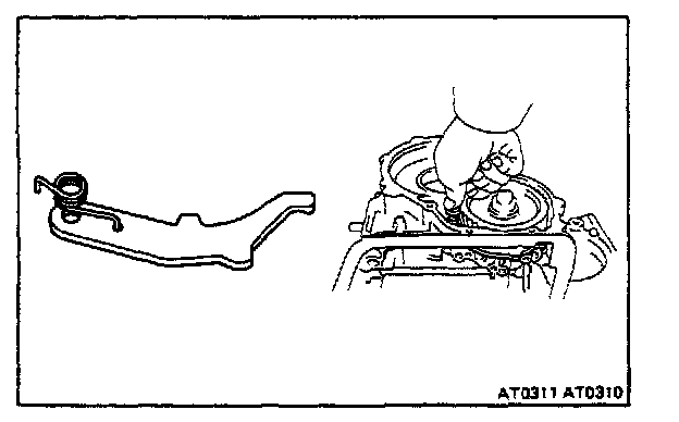 a. Place the parking pawl onto the case. Hook the spring ends to the case and pawl.