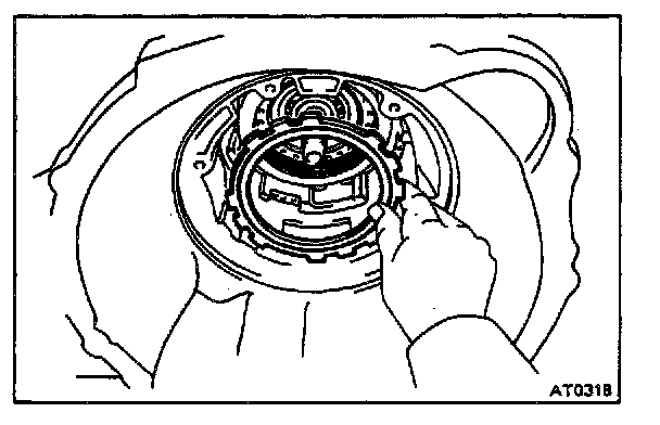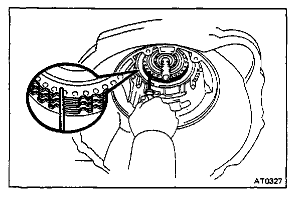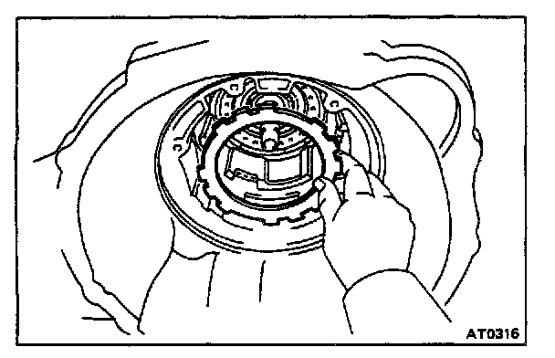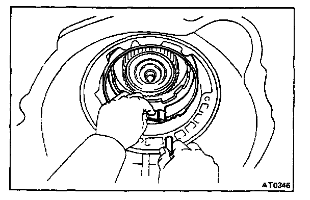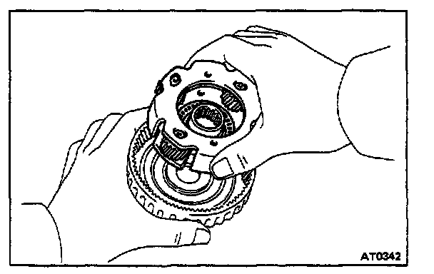 d. Mesh the hub with the flukes of the direct clutch while turning the clutch drum or forward clutch.