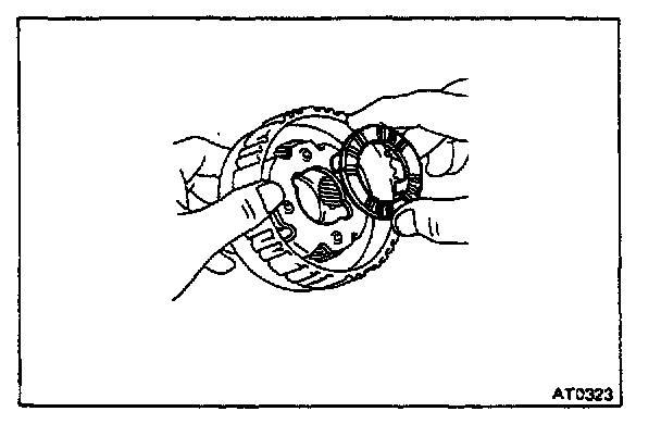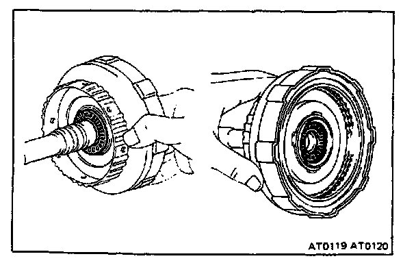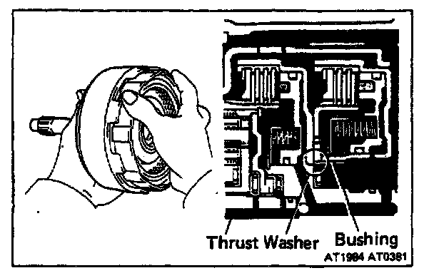 e. If the flukes of the discs are meshed with the hub correctly, the end of the bushing with the direct clutch drum will be flush with the surface of the forward clutch.