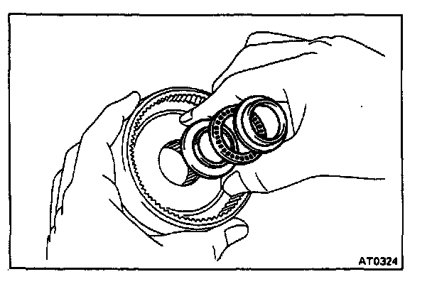 a. Coat the races and the bearing with petroleum jelly and install them onto the ring gear.