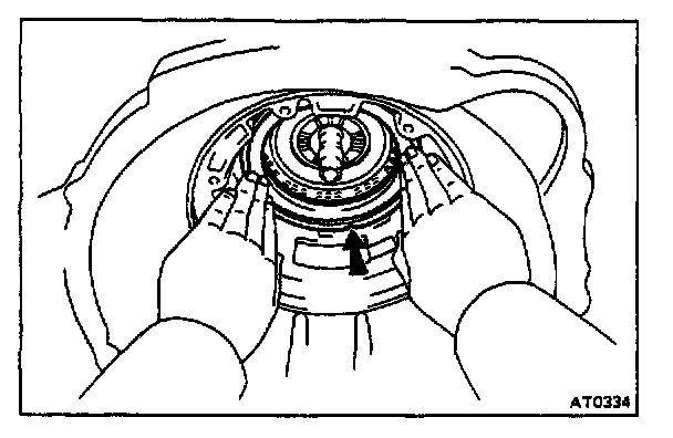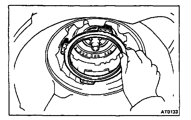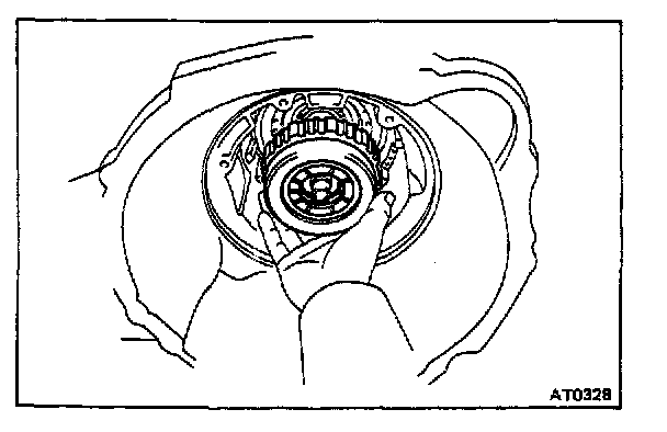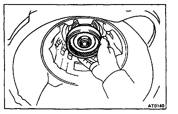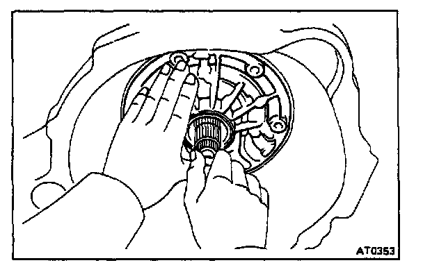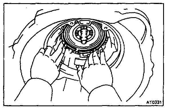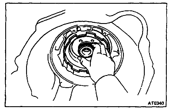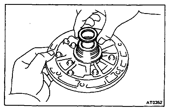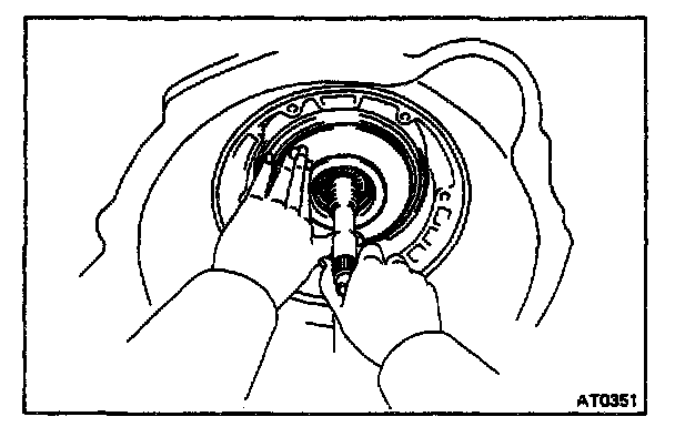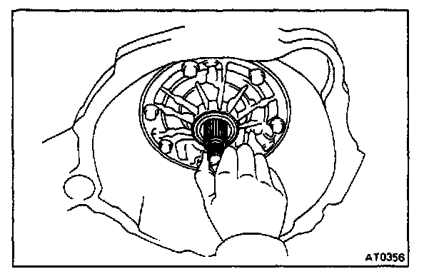 CAUTION: Do not push on the oil pump strongly or the oil seal ring will stick to the direct clutch drum.