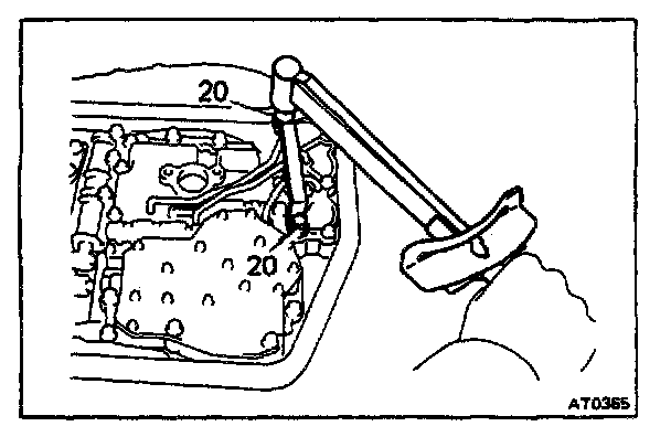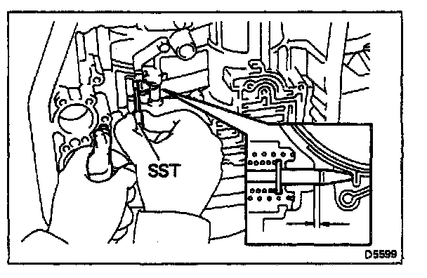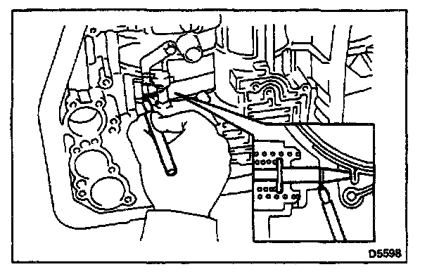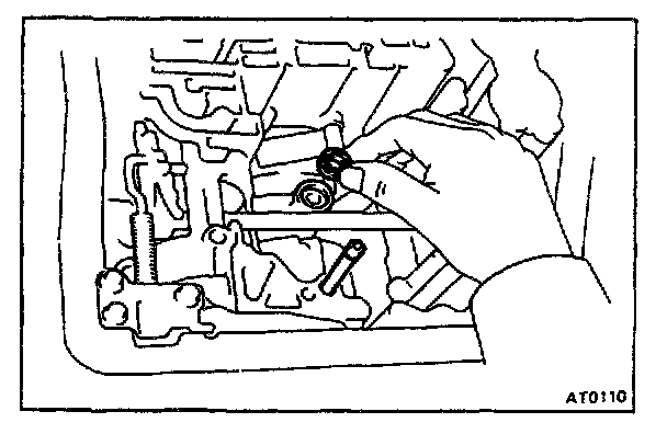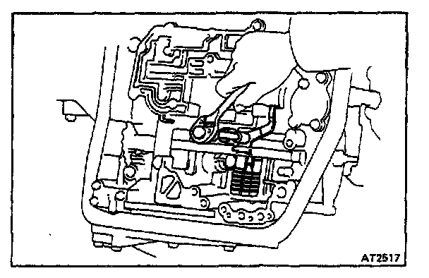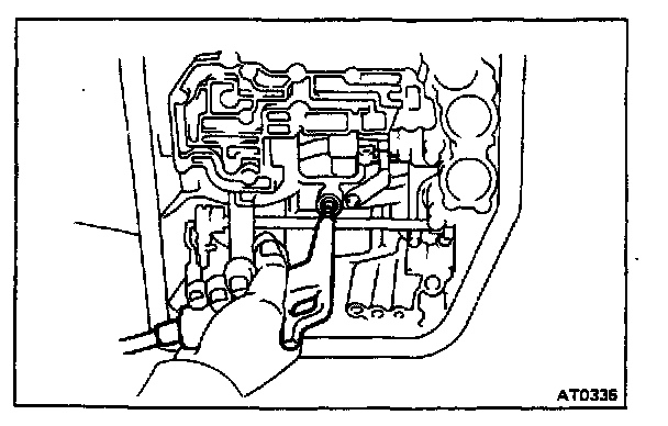 b. Check that the manual valve lever is touching the center of the detent spring tip roller.