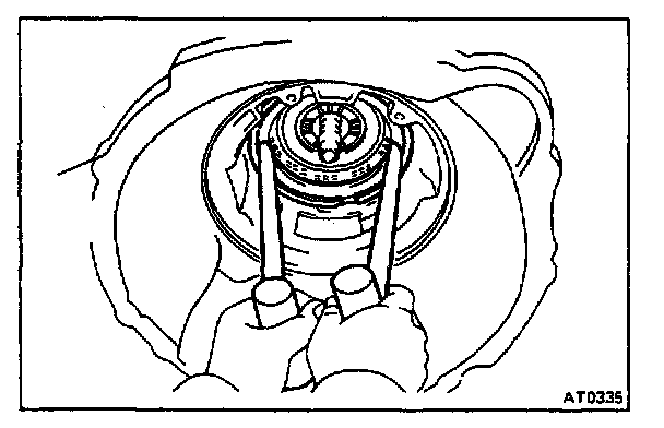 b. While compressing the piston return springs over the drum with hammer handles, install the snap ring into the groove.