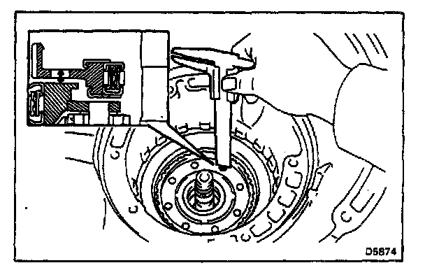 b. Coat the race with petroleum jelly and install it onto the tip of ring gear flange.