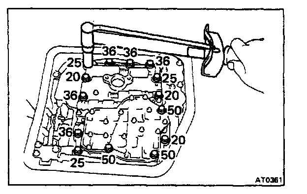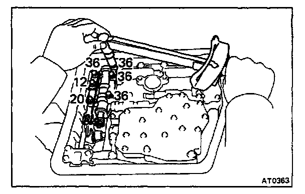 42. PLACE MANUAL VALVE AND BODY ON TRANSMISSION