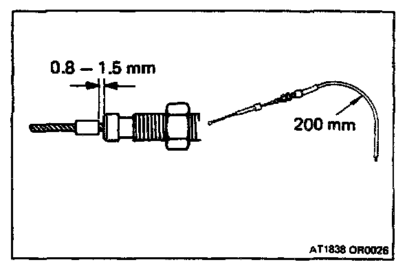 c. Stake the stopper, 0.8 - 1.5 mm (0.031 - 0.059 in.) from the end of outer cable.