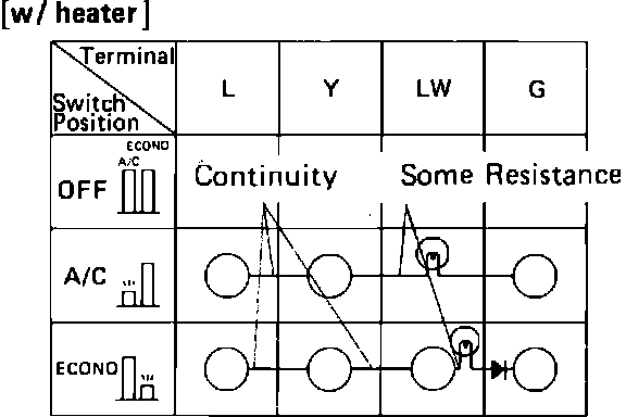 Fig. 8 A/C switch continuity test. Rear wheel drive: