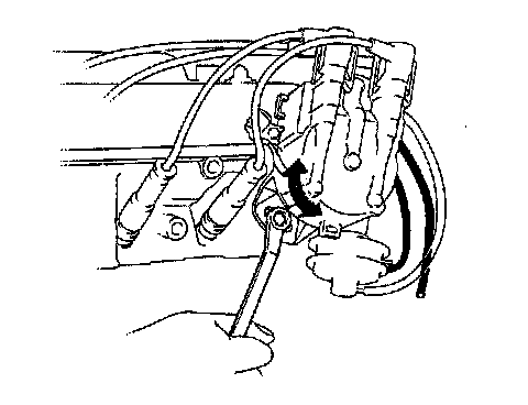 4. To adjust, loosen the distributor hold down bolt and slowly turn the distributor until the timing mark indicates 5° BTDC.